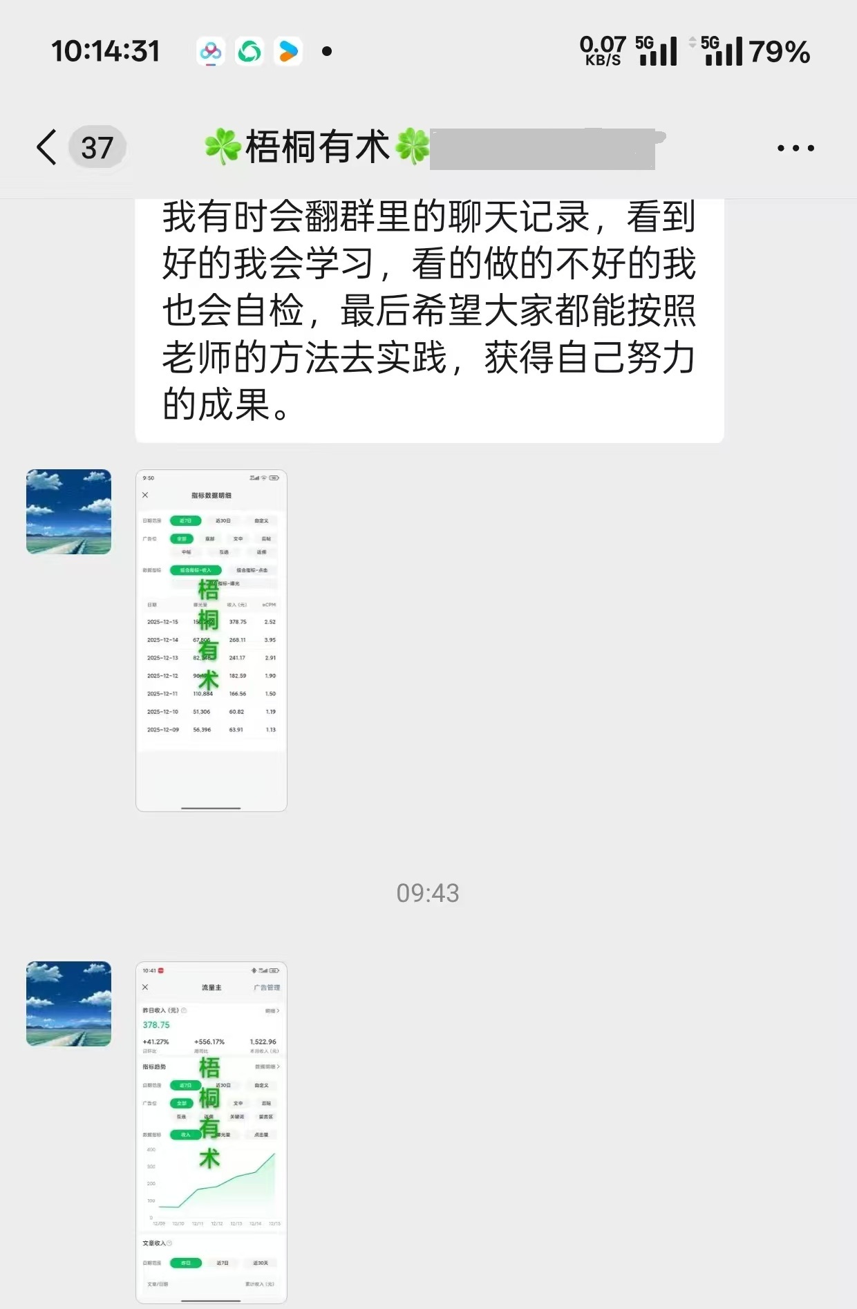 后来他经常翻看群里分享的聊天记录,学别人的优点,避开别人踩过的坑。不懂养号、写文、检测这些技巧,就问老师。就这么一点点坚持,现在从每天十几元涨到了三百多,虽然偶尔还是会犯懒,但看着收入不断的增加,那种成就感我想很多人应该有所体会。